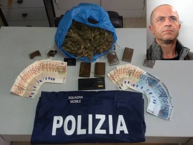 L’operazione consentiva di rinvenire una busta in cellophane, contenente 900 grammi di marijuana, un secondo involucro con hashish del peso di 500 grammi, suddivisa in cinque panetti da 100 grammi; 60 grammi di hashish suddiviso in due pezzi da 30 grammi, pronti per lo spaccio al minuto; due bilancini di precisione e la somma di 3.700 euro in banconote di vario taglio, presumibilmente provento dell’attività di spaccio.