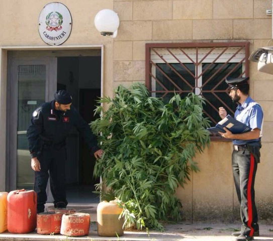 Da un attento controllo presso le pertinenze di proprietà hanno inoltre rinvenuto, in un fondo limitrofo ad una delle due abitazioni, una coltivazione di marijuana ben organizzata, comprendente un impianto di irrigazione munito di gocciolatoio per ognuna delle 11 piante rinvenute dalle dimensioni di circa 2 metri.