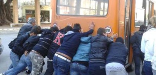 Ora, nel 2015, in Italia, con una certa frequenza accade che gli autobus si fermino per problemi meccanici e che i passeggeri scendano per dargli la spinta e farli ripartire. Questa “spinta” non è nel patto, in quanto si paga il biglietto per essere trasportati fino a destinazione.