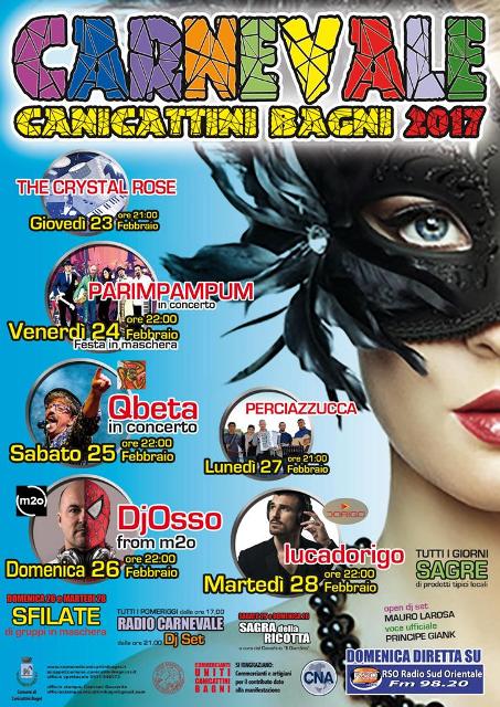CANICATTINI – Chiude con un bilancio più che positivo il Carnevale 2017 di Canicattini Bagni, frutto di un lavoro d’insieme tra l’Amministrazione comunale, le realtà associative della città, i commercianti, gli artigiani, i ristoratori, le tante professionalità e cittadini che non si sono tirati indietro ed hanno voluto essere protagonisti, partecipando e collaborando all’organizzazione, alla realizzazione dei gruppi in maschera per la sfilata o, semplicemente, hanno voluto essere presenti in queste sei serate in piazza XX Settembre per vivere e far rivivere “alla grande” il Carnevale canicattinese. Leggi tutto “Bilancio positivo per il Carnevale 2017 di Canicattini nato dalla sinergia tra Comune, associazioni, commercianti e cittadini”